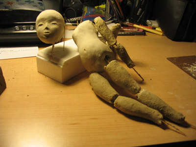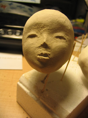 Mais le plus gros défi, c'est la tête. Elle fait 5cm de haut et même mon petit doigt fait plus de 1cm! C'est vraiment dur, le moindre mm de terre en plus ou en moins détruit l'équilibre du visage!